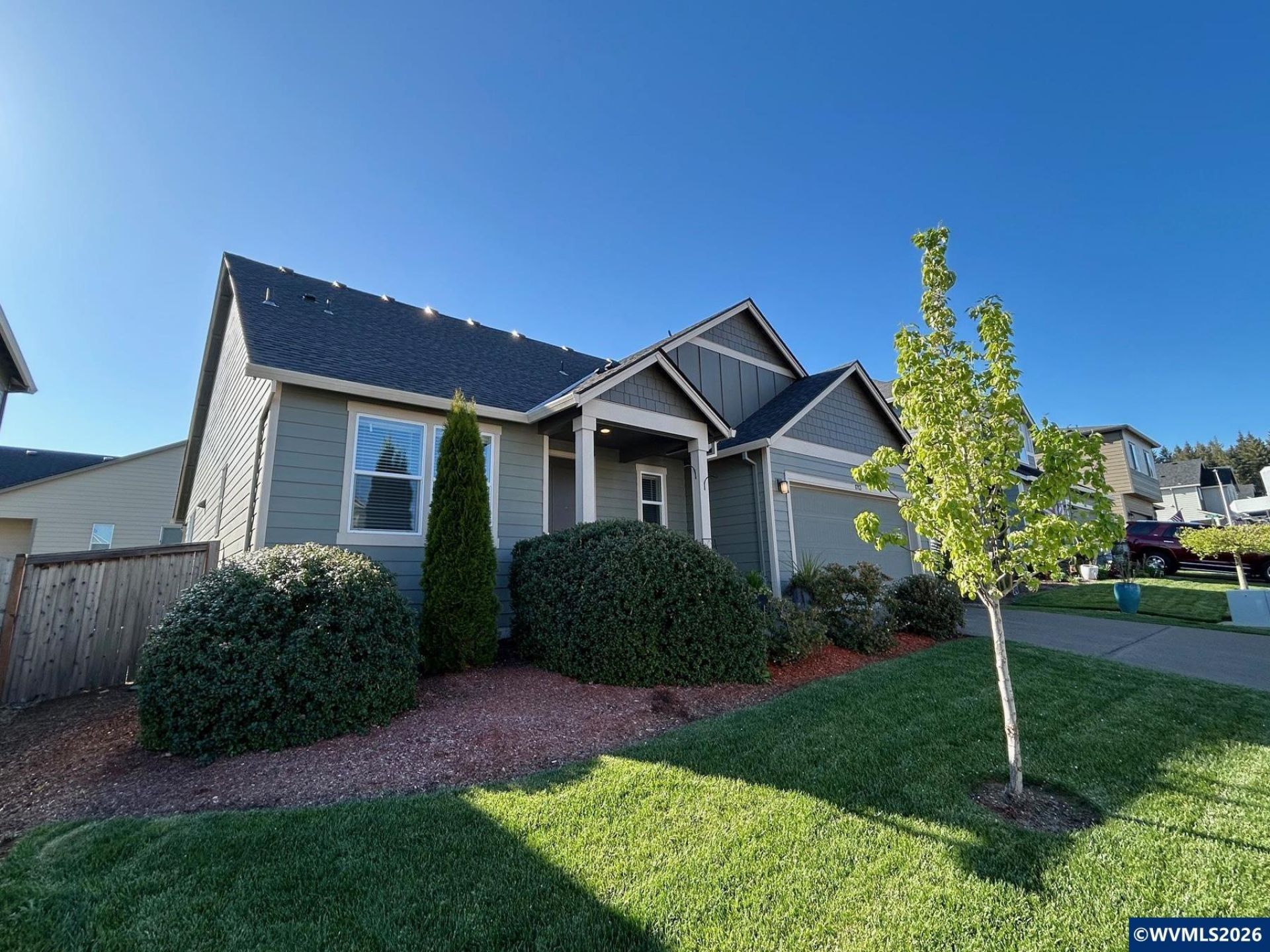 READY to move, seller is motivated and that is your gain. Better than new beautiful. Arguably one of the best floor plans in this neighborhood. Stunningly high vaulted ceilings, chefs kitchen package with large quartz island, stainless steel gas appliances, recessed farm sink, walk in pantry and extensive cabinetry. Primary suite on the main floor impresses with recessed ceiling, walk in closet, double sink vanity and a soak tub. This level also offers a powder bath, a huge office and a laundry room. 2 additional guest bedrooms located upstairs and a spacious guest bathroom. Laminate floors throughout your main living area, with oversized windows and a cozy gas fireplace with a tile surround. Covered back patio already set up for summer with party lights, blueberry bushes, sprinklers and a nice amount of grass. Front yard maintenance is included in your low monthly HOA. If you have big garage needs, this one has you covered with it's extra deep tandem design, finished store room and an EV charger already in place. Great feelings all around walking into this home, now available.
